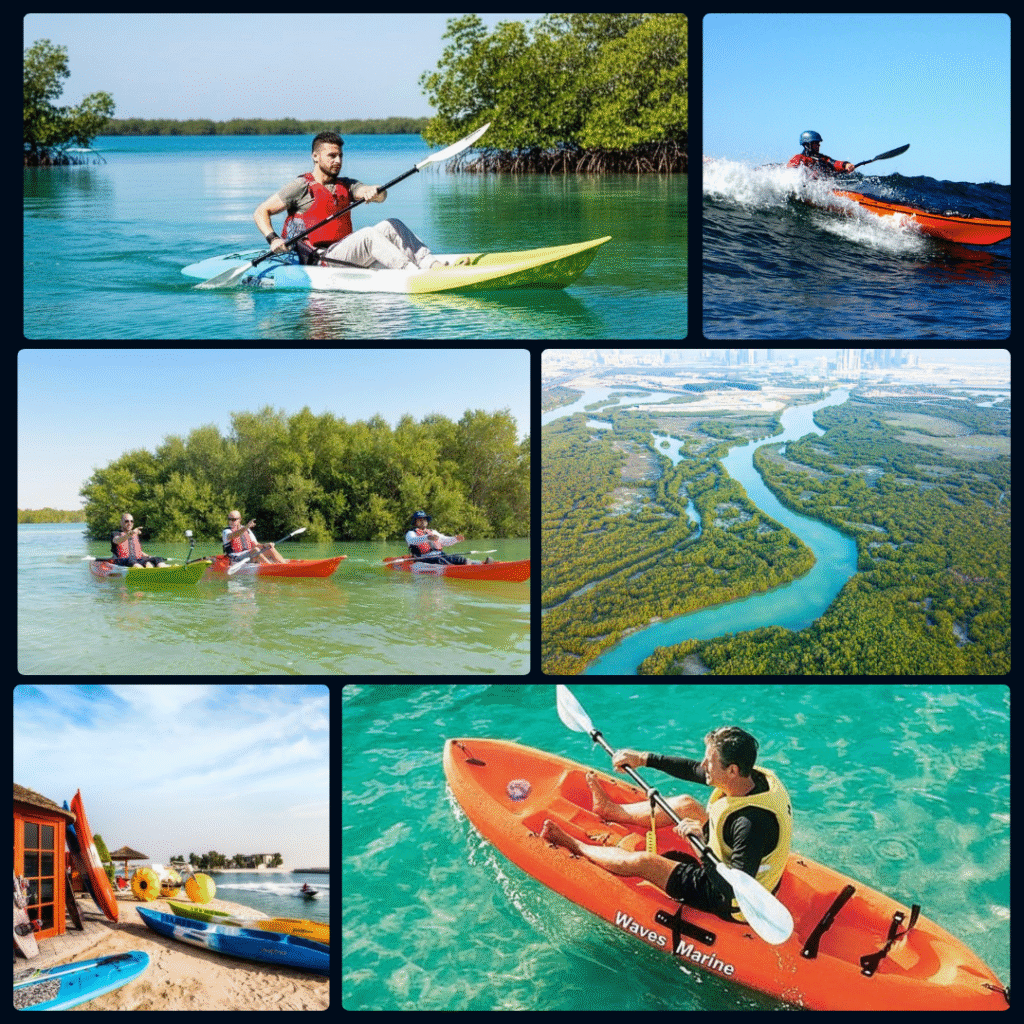 Waves marine sports club offers two primary kayaking experiences; 1 hour leisure paddles typically located in sea front of major landmarks and hotels, and 2-hours immersive guided tours through the eastern mangrove national park.